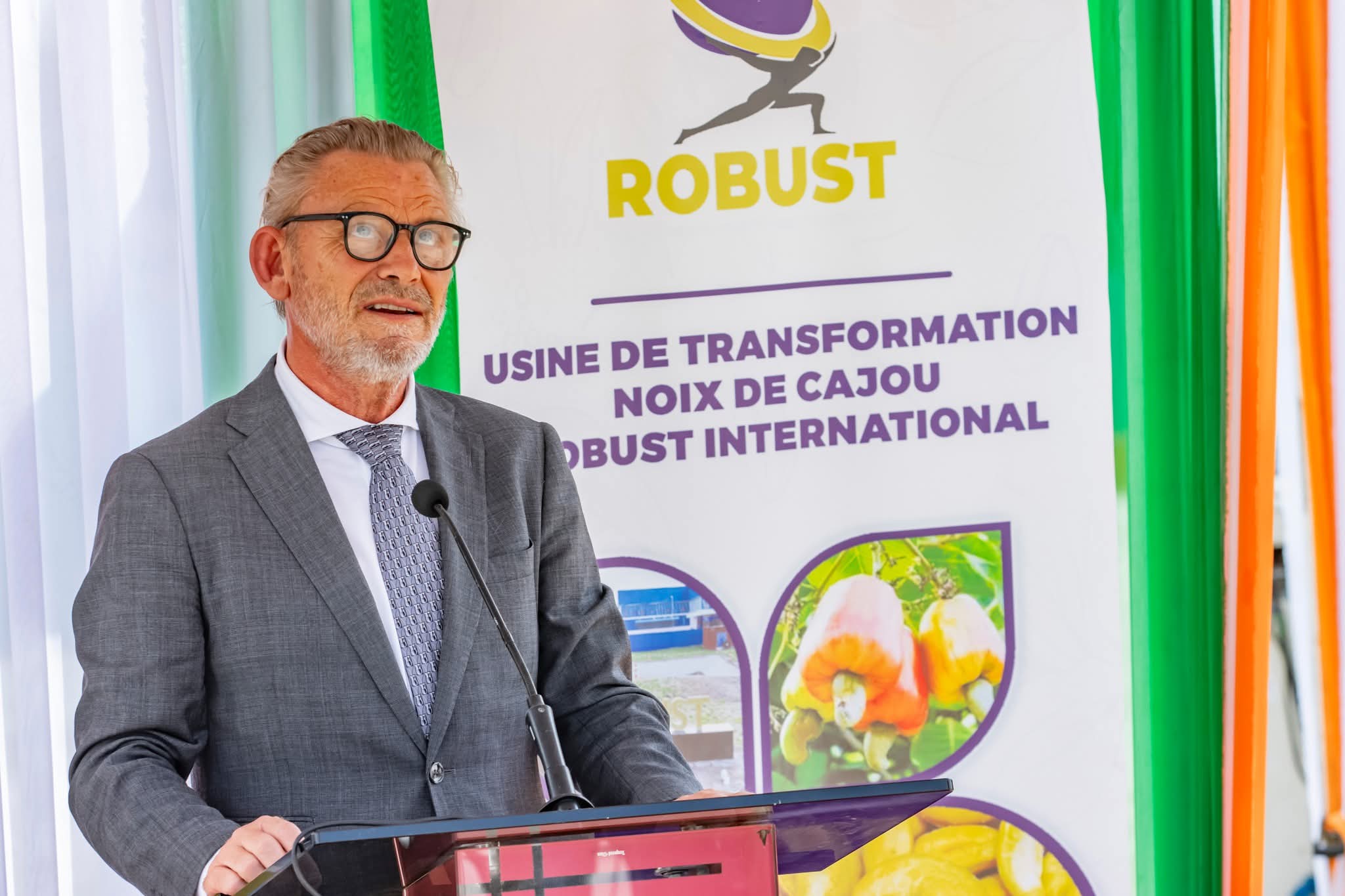 Fruit d’un investissement de 15 milliards de francs CFA, cette unité industrielle marque un tournant dans la valorisation locale de la filière anacarde, deuxième produit d’exportation agricole du pays après le cacao. L’usine devrait générer 1 000 emplois directs, don’t 70 % occupés par des femmes, contribuant ainsi à l’autonomisation et à l’Inclusion socio-économique des populations locales. ROBUST est le résultat d’une coopération internationale impliquant des partenaires africains, asiatiques et européens, avec l’appui notable de la Banque néerlandaise de développement entrepreneurial (FMO).